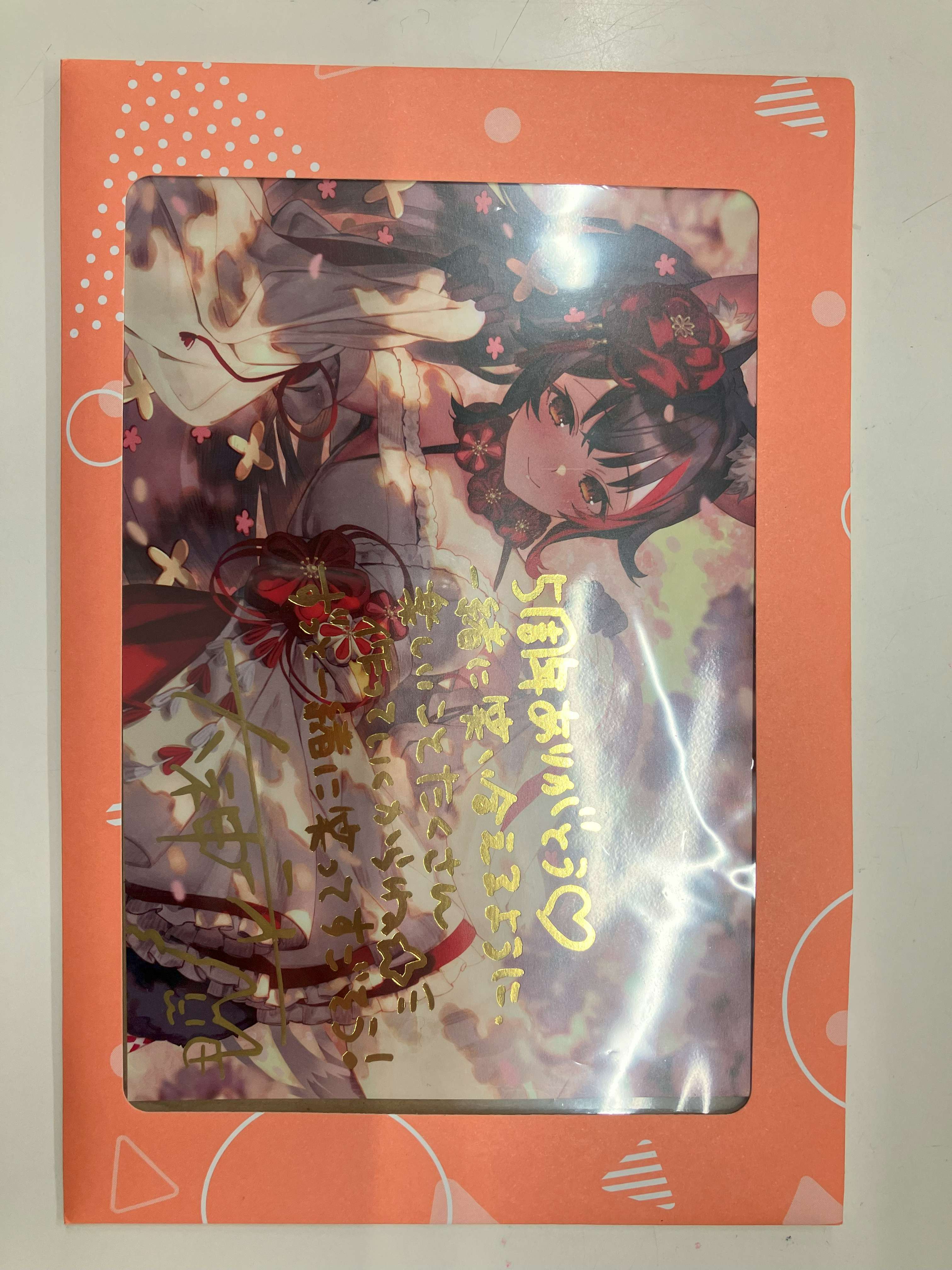 ホロライブ 活動5周年記念 直筆サイン&箔押し複製メッセージ入りポストカード 大神ミオ
