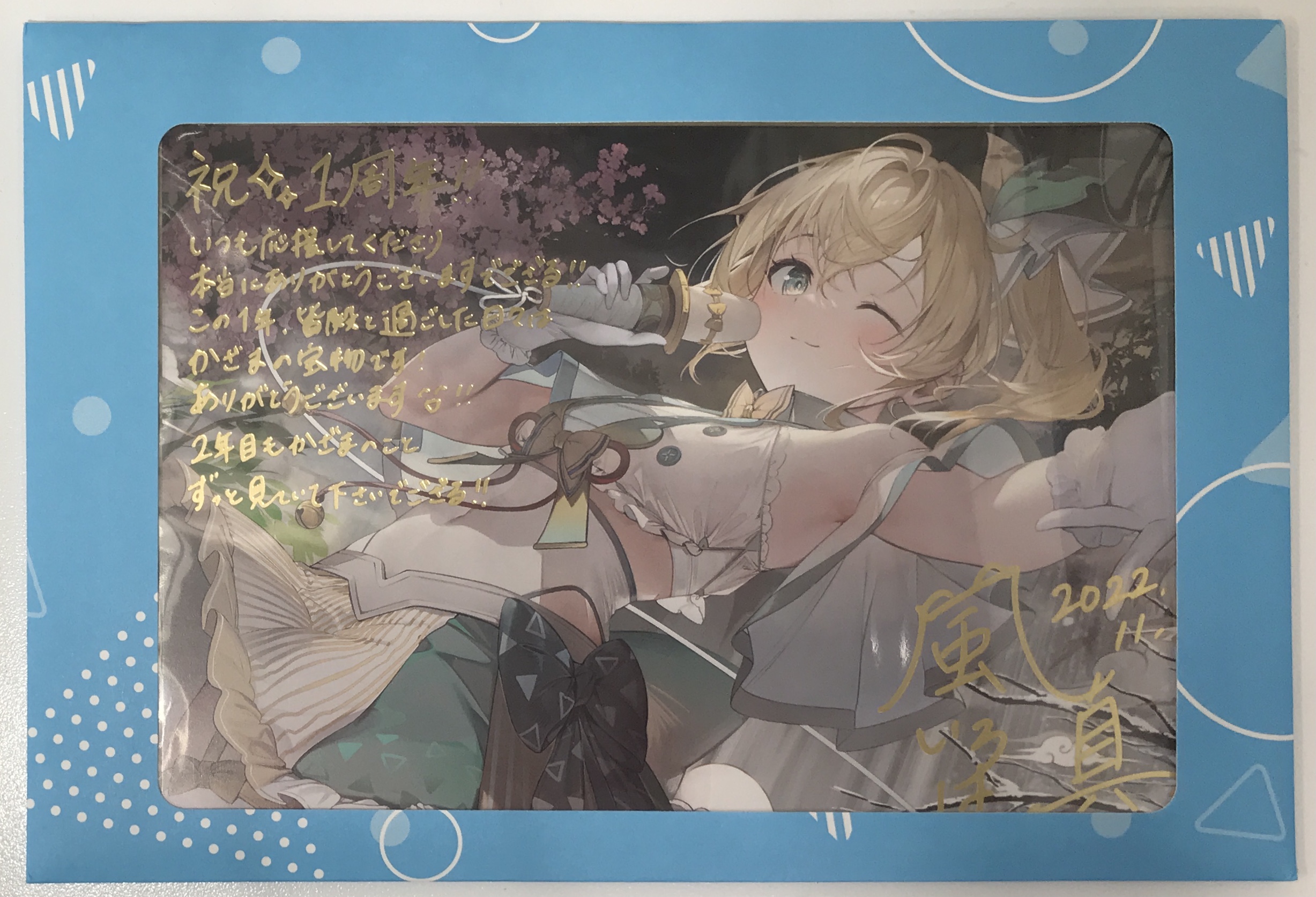 ホロライブ 活動1周年記念 箔押し複製サイン&メッセージ入りポストカード 風真いろは