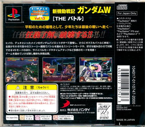 SIMPLEキャラクター2000シリーズ Vol.13 新機動戦記ガンダムW THE バトル 【プレイステーション】