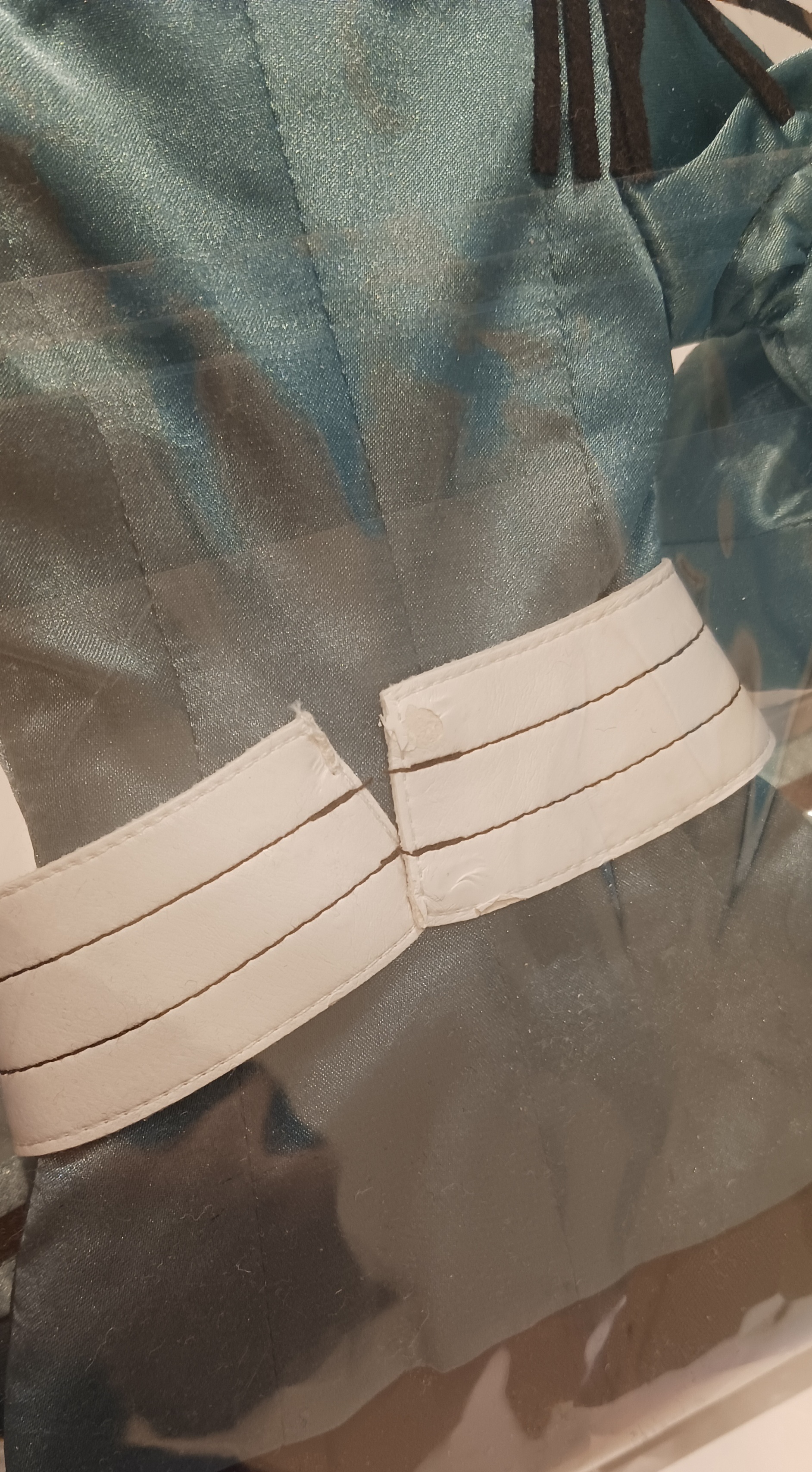 経年劣化により、衣装の革部分にひび割れや剥がれがあります。