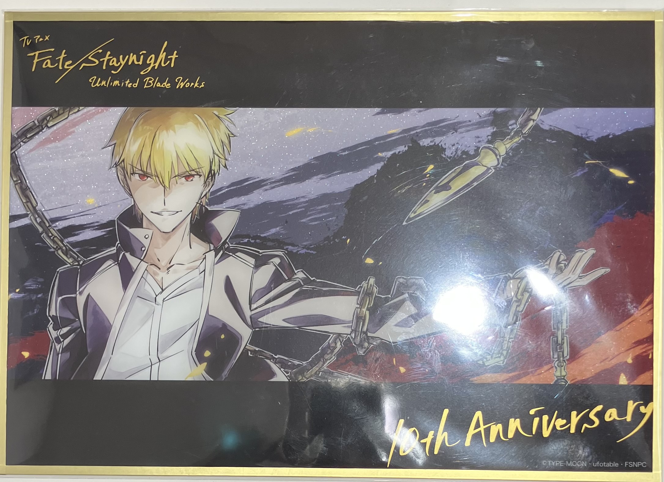 Fate/stay night [Unlimited Blade Works] 10th Anniversary 10周年記念描き下ろしアートボード&色紙 WEBSHOPくじ 記念アートボード A賞 「描き下ろしアートボード」箔押しアクリル色紙 ギルガメッシュ