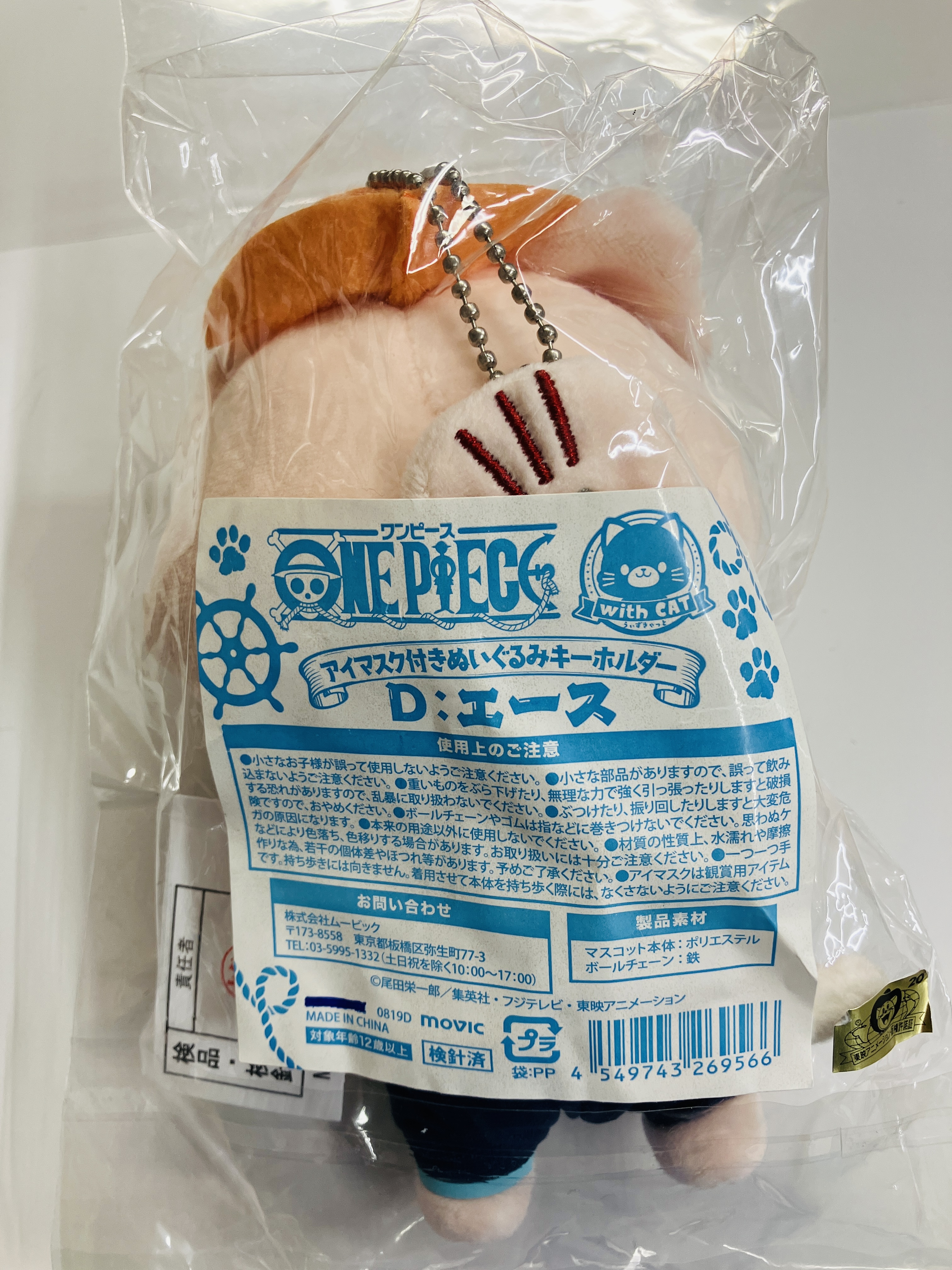 【未開封】ONE PIECE アイマスク付きぬいぐるみキーホルダー withCAT ポートガス・D・エース